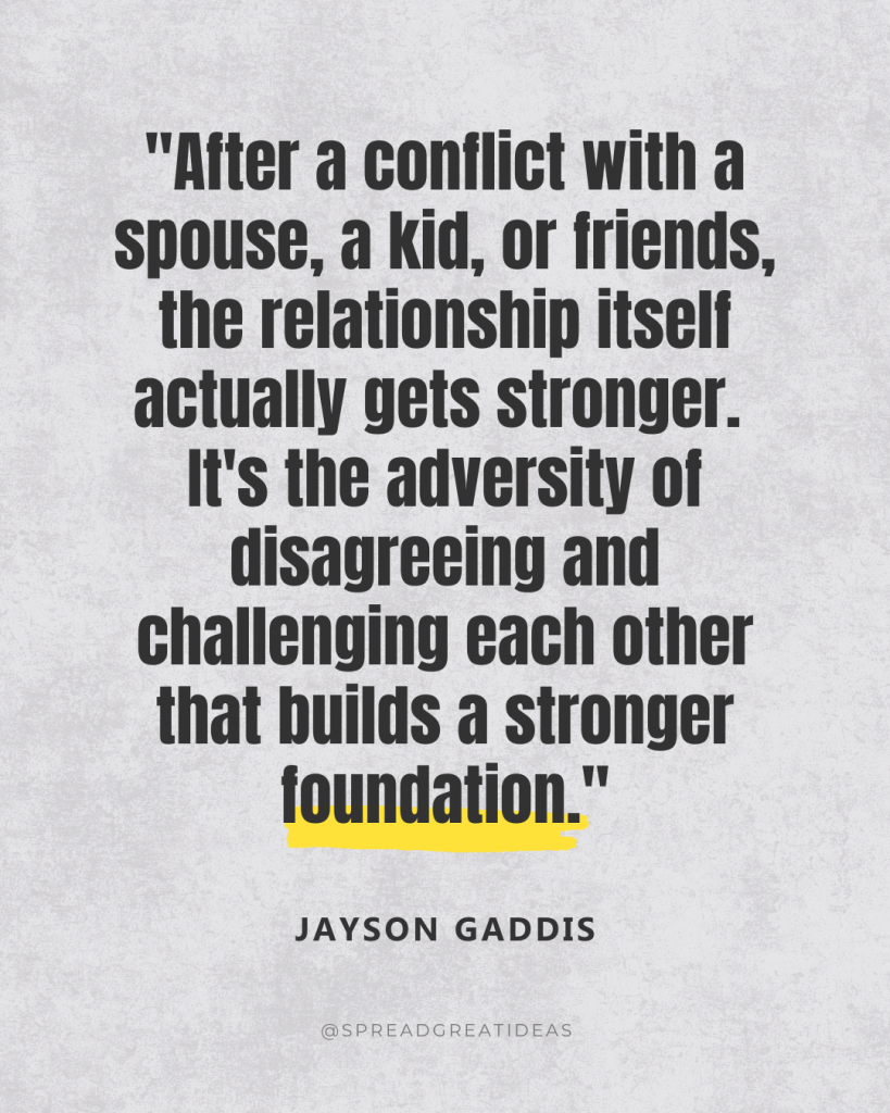 “After a conflict with a spouse, a kid, or friends, the relationship itself actually gets stronger. It’s the adversity of disagreeing and challenging each other that builds a stronger foundation.”